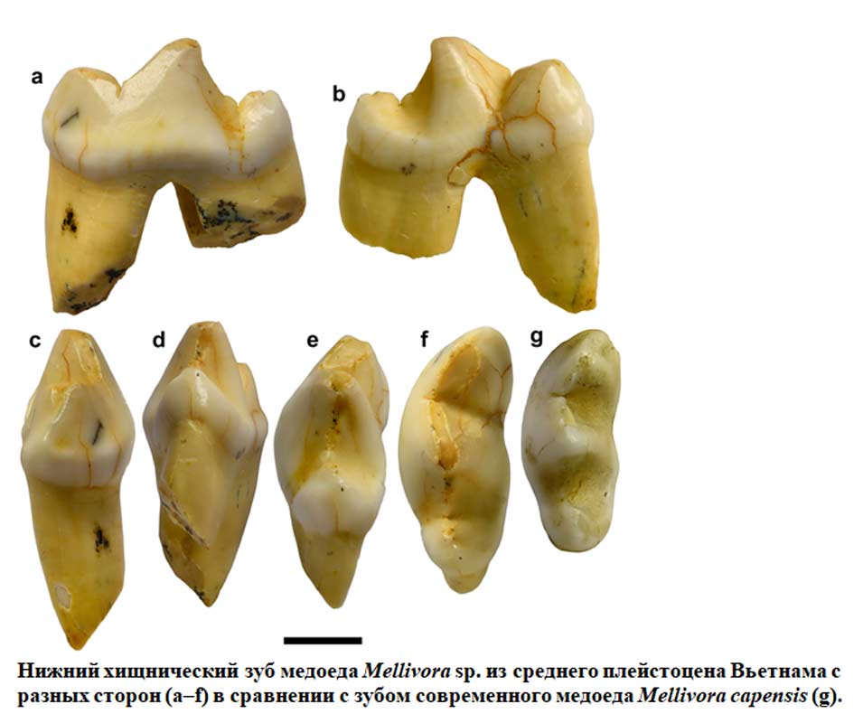 Специалисты из России и Вьетнама изучили зуб древнего медоеда, найденный в пещере Там-Хай на севере азиатского государства. Это первая и единственная находка остатков представителей рода Mellivora в Юго-Восточной Азии.