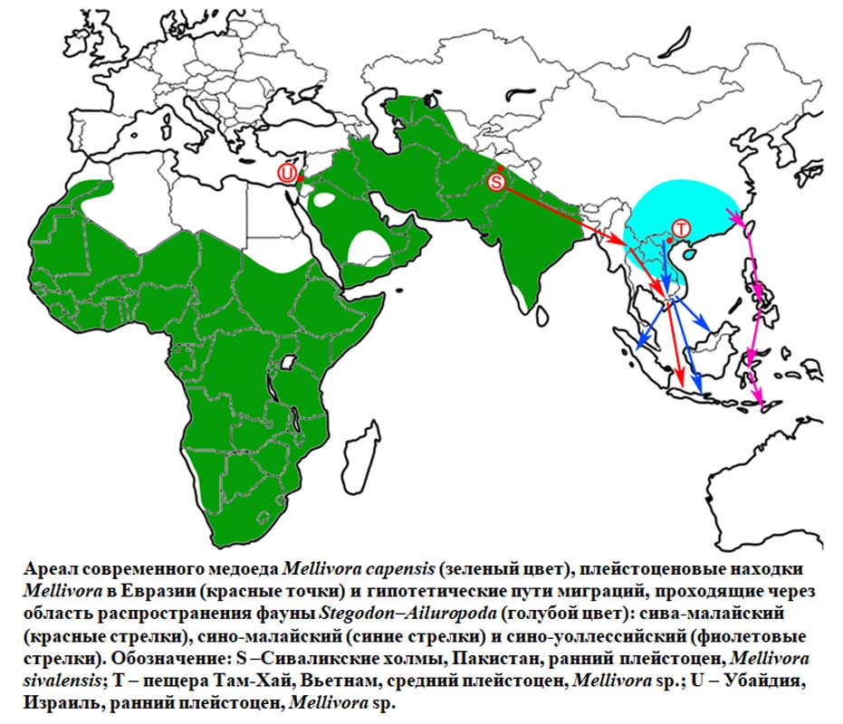 До этого ископаемые остатки древних медоедов в Юго-Восточной Азии не встречались, представители современного вида здесь тоже не обитают. Ближайший ареал медоеда находится в Индии, то есть более чем в двух тысячах километров. Находка отнесена к представителям рода Mellivora. Этот зверь был явно крупнее современного Mellivora capensis, но существенно мельче некоторых других своих ископаемых родственников, таких как огромные Eomellivorini. В древности подсемейство Mellivorinae было многочисленным и разнообразным, первые его представители обнаруживаются в миоцене (около 14–12 миллионов лет назад). Остатки этих животных находят в Африке, Европе, Израиле и Пакистане, а также в Китае, Казахстане, в Сибири и Северной Америке.