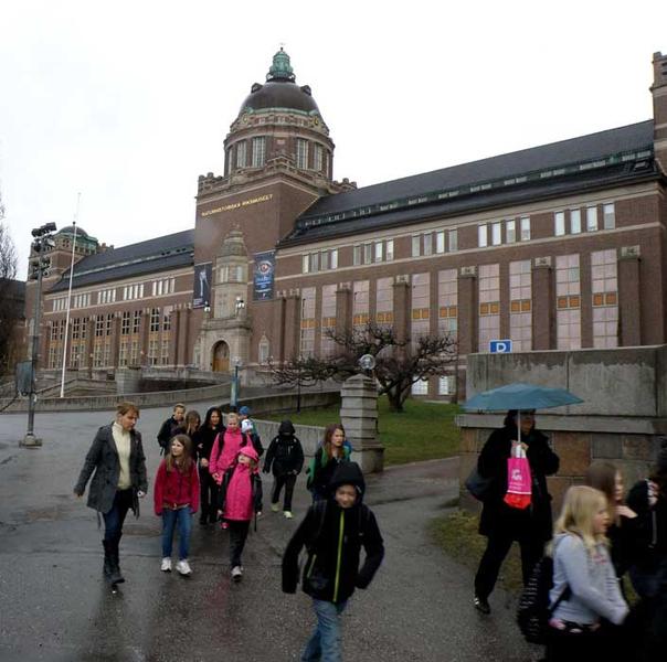 Музей размещен в огромном и очень красивом здании в университетском городке на севере шведской столицы (фото в центре). Несмотря на неприветливую погоду в нем было много посетителей, в том числе школьников и родителей с маленькими детьми.