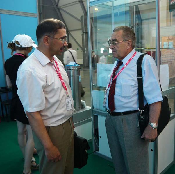 Около стенда УрО РАН надолго задержалась немецкая делегация из Ганновера. Как сказал начальник отдела выставок Отделения В. В. Джибладзе, они занимаются продвижением инновационных технологий на немецкий рынок. Уральцы познакомились с ними на одной из выставок в Ганновере, тогда и началось взаимодействие. Конкретно германские коллеги помогают продвигать наши разработки. С сотрудниками Уральского отделения они общаются как со старыми знакомыми, среди них заместитель председателя УрО член-корреспондент РАН Н. В. Мушников. Я попросила Николая Варфоломеевича поделиться своими впечатлениями о выставке.