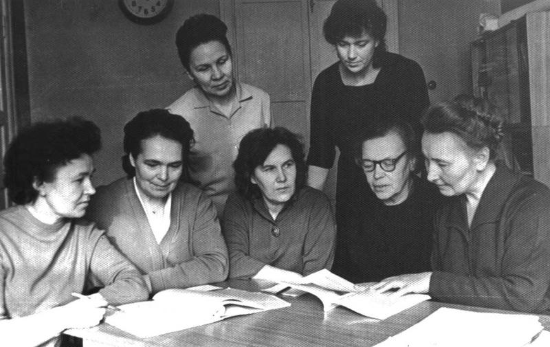 Рабочее совещание. Первая справа — директор института И. В. Забоева (1968)