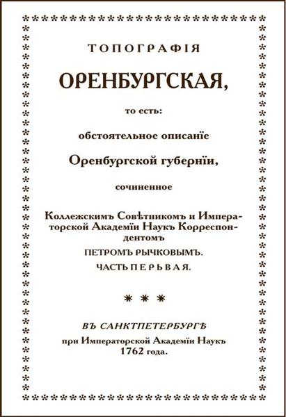 Выдающийся ученый и государственный деятель Российской империи П. И. Рычков в полной мере являлся сыном «безумного и мудрого», по словам А. Н. Радищева, XVIII века. Несмотря на значительный вклад известных российских ученых первой половины XVIII в. И. К. Кирилова и В. Н. Татищева в накопление и распространение географических знаний и составление первых карт Российской империи, работы этих исследователей стилистически и структурно продолжали традицию историко-географических лексиконов и трактатов позднего Средневековья и начала Нового времени. Становление современной географии и регионоведения связано с именем их младшего современника и ученика П. И. Рычкова (1. 10. 1712–15. 10. 1777) — первого члена-корреспондента Санкт-Петербургской Императорской академии наук. Его главный научный труд «Топография Оренбургская», с момента публикации которого в 2012 г. исполняется 250 лет, положил начало истории монографических исследований в современной науке, а также способствовал становлению и развитию российской региональной науки. Если до середины XVIII в. Академия наук объединяла исключительно столичных ученых, не имея провинциальных подразделений, то в 1759 г. с учетом достижений и заслуг П. И. Рычкова специально для него было введено звание «академический корреспондент». Так начинает формироваться институт членов-корреспондентов Санкт-Петербургской Императорской академии наук.