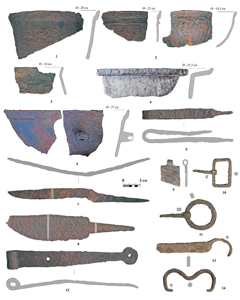 Бытовые предметы XVIII — начала XX века представлены чугунными котлами, железными ножами, ножницами, пряжками, дверными петлями и ручками от сундуков. Найдены стеклянные бусины и бутылки, костяные изделия, оружейные кремни и кресала, поливные изразцы. Особо выделяются бронзовая ложечка с рисунком, бляшки с конской упряжи, кольца и пуговицы из цветного металла.