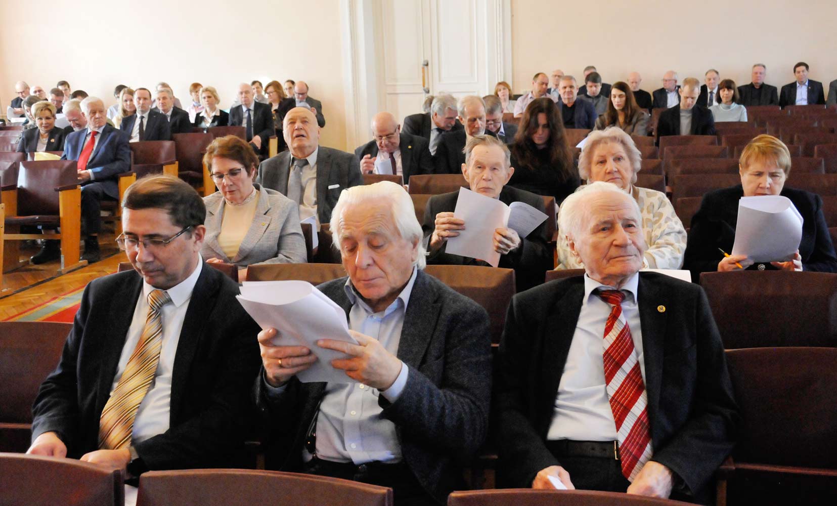 Вторая часть собрания открылась сеансом связи с академиком Г.А. Месяцем, который рассказал коллегам о том, как создавалось академическое отделение на Урале, какие сложности пришлось преодолеть и что это дало научному сообществу, региону и всей стране. Подробно эта история изложена в его интервью и биографических книгах, а суть ее следующая: долгое время «опорный край державы» — богатейший источник полезных ископаемых, где сосредоточены мощная индустрия, предприятия Атомного проекта и где трудились и трудятся первоклассные исследователи, был обделен вниманием Академии наук. И когда в годы перестройки перспективному ученому и организатору из Сибири предложили возглавить Уральский научный центр, Месяц в свою очередь предложил создать здесь полноценное отделение АН СССР по примеру Сибирского. Продвижению идеи активно способствовали секретарь ЦК КПСС Е.К. Лигачев, председатель Совета Министров СССР Н.И. Рыжков, академик Г.И. Марчук, тогда председатель Госкомитета по науке и технике, потом президент АН. В феврале 1987 г. в Свердловске состоялось историческое для науки Урала и не только событие — выездная сессия президиума АН СССР, решения которой легли в основу организации Уральского, а также Дальневосточного отделений РАН, к созданию которого Геннадий Андреевич имеет прямое отношение. В итоге были организованы и плодотворно работают сегодня 22 новых академических института в Свердловске, Перми, Ижевске, Сыктывкаре, Уфе, Миассе, позднее эта география умножилась Челябинском, Оренбургом, Архангельском. Особо Геннадий Андреевич остановился на роли региональных отделений АН, прежде всего Сибирского и Уральского, в сохранении в России Академии наук после распада СССР, в тяжелейший период хаоса, когда звучали предложения ее закрыть. По существу, отстояли ее тогда академики Г.А. Месяц, Ю.С. Осипов, А.А. Гончар и В.А. Коптюг, заручившись поддержкой первого президента РФ уральца Бориса Ельцина.