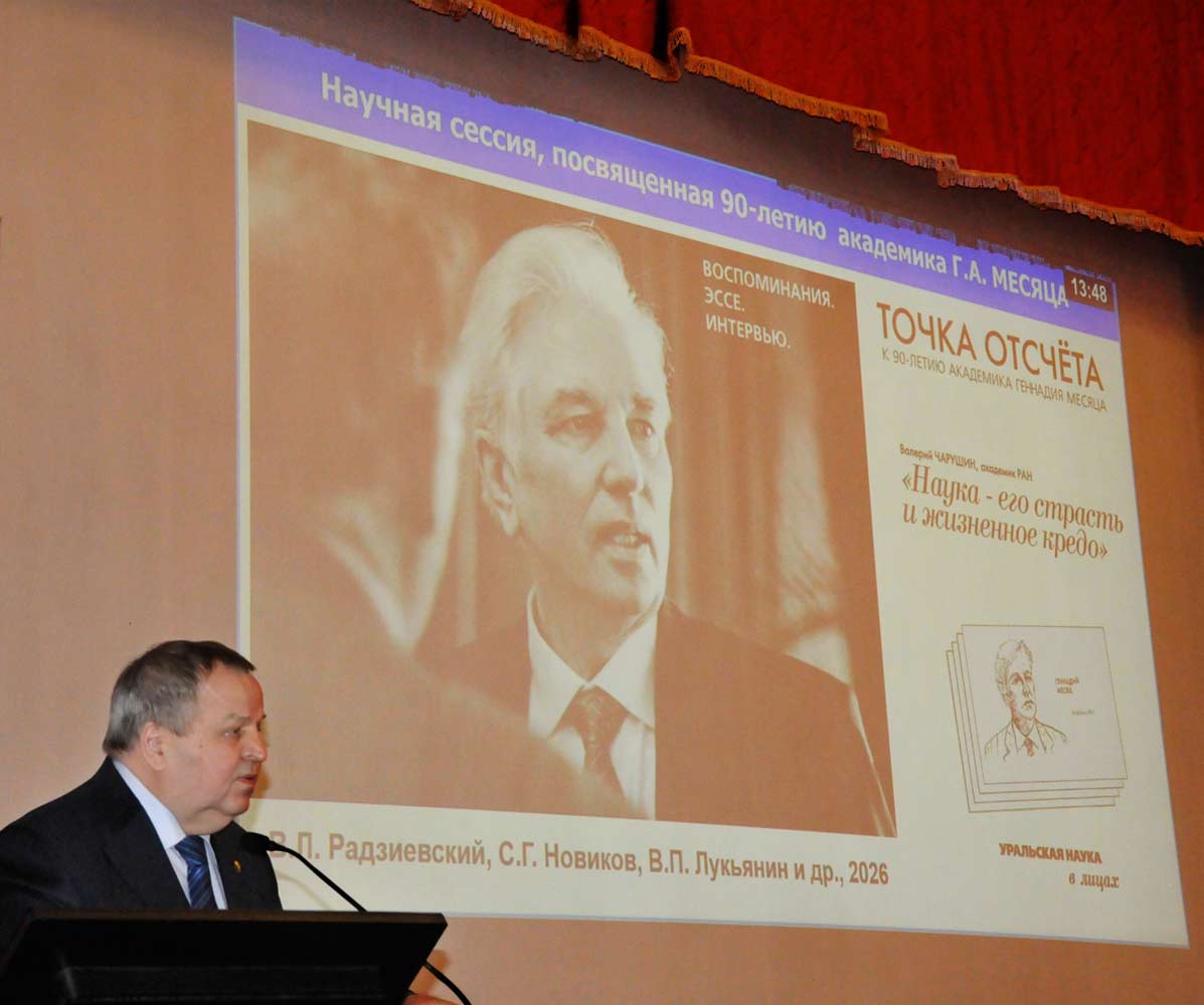Программа прошедшего в марте весеннего общего собрания Уральского отделения РАН состояла из двух частей: подведения итогов прошлого года, уточнения планов на будущее и научной сессии, приуроченной к 90-летию организатора и первого председателя УрО академика Г.А. Месяца. Собрание приветствовали глава департамента промышленной и инвестиционной политики Администрации Екатеринбурга Евгений Копелян, подчеркнувший, что наука — драйвер экономики мегаполиса, и первый вице-президент Свердловского областного союза промышленников и предпринимателей Александр Породнов, отметивший активный рост связей академических институтов с реальной экономикой.