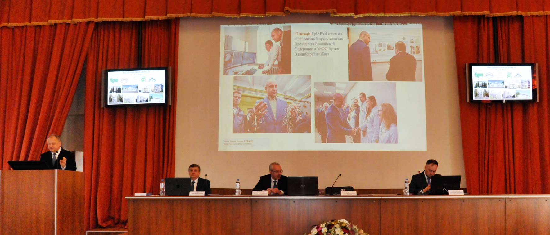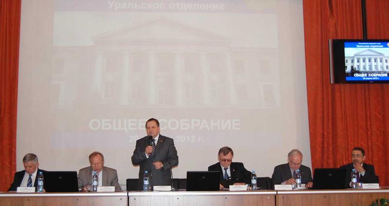 Программа прошедшего в марте весеннего общего собрания Уральского отделения РАН состояла из двух частей: подведения итогов прошлого года, уточнения планов на будущее и научной сессии, приуроченной к 90-летию организатора и первого председателя УрО академика Г.А. Месяца. Собрание приветствовали глава департамента промышленной и инвестиционной политики Администрации Екатеринбурга Евгений Копелян, подчеркнувший, что наука — драйвер экономики мегаполиса, и первый вице-президент Свердловского областного союза промышленников и предпринимателей Александр Породнов, отметивший активный рост связей академических институтов с реальной экономикой.