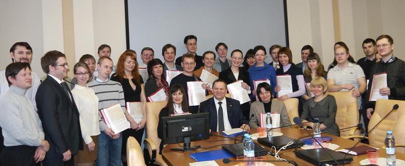 2 апреля в конференц-зале президиума УрО РАН состоялось торжественное вручение государственных жилищных сертификатов молодым ученым. Председатель Отделения академик В. Н. Чарушин поздравил счастливых обладателей и сказал, что сам их выбор в качестве претендентов на получение жилья говорит о них как о перспективных исследователях. Коллективы институтов, в которых работают молодые ученые, связывают свое будущее именно с ними, рассчитывают на них.