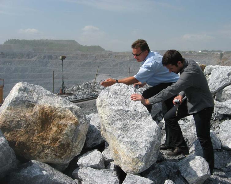 Австрийские гости Бернхард Гуттернигг (фирма «Paltentaler Minerals») и Александр Шмидерер (Горный университет Леобена) знакомятся с сырьем в карьерах комбината «Магнезит»